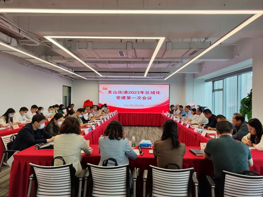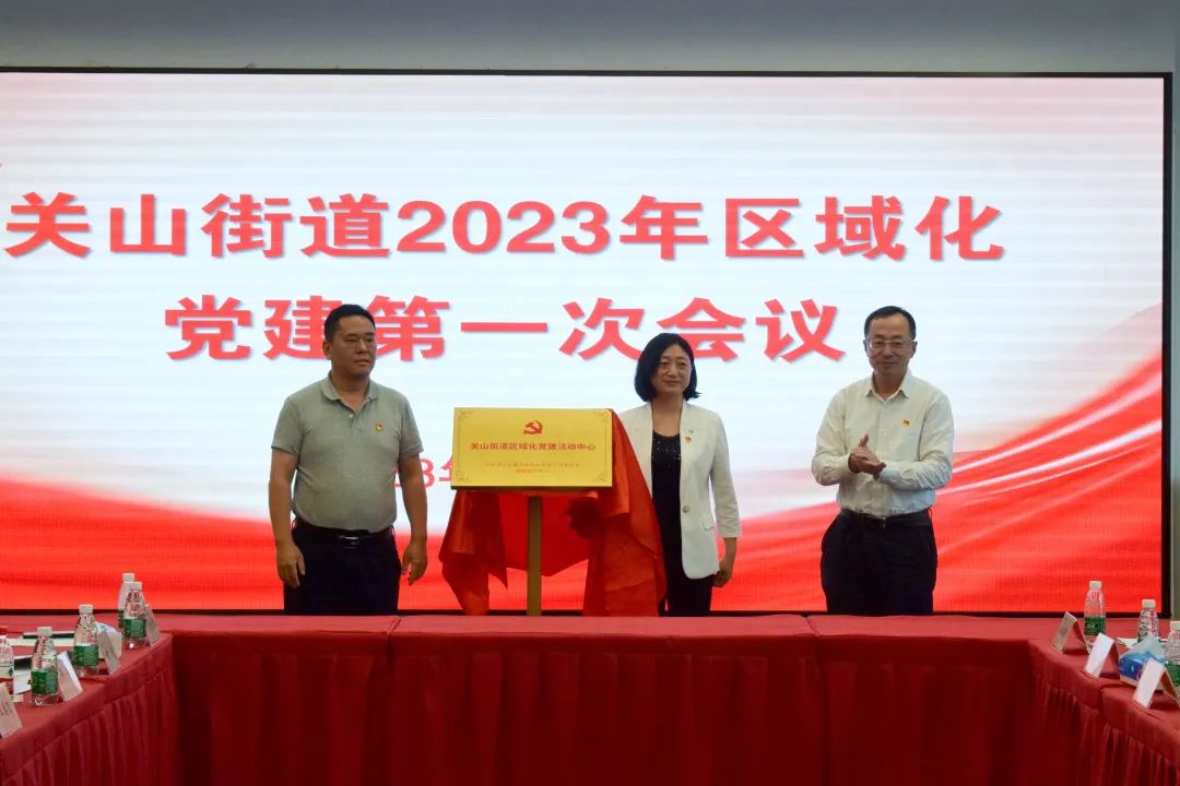 5月26日上午,洪山区关山街道召开2023年区域化党建工作第一次会议,街道区域化党建成员单位党建负责人及街道省内协作单位参会。会议现场,关山街道与琨瑜国际中心联合揭牌“关山街道区域化党建活动中心”,以进一步加强区域交流协作,助推关山经济社会高质量发展和基层治理能力提升。