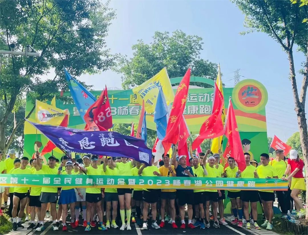 5月27日上午,洪山区第十一届全民健身运动会开幕式暨2023年杨春湖公园健康跑启动,来自武汉市的10个跑团近400人在杨春湖公园欢乐开跑。