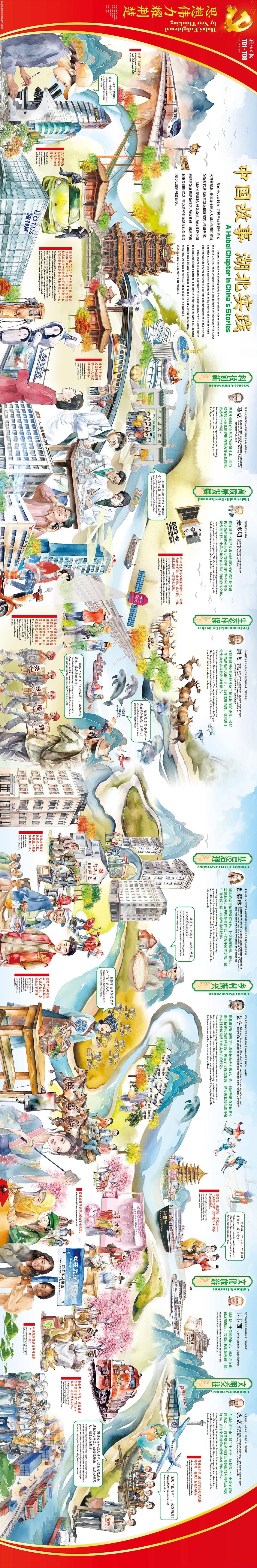讲好中国故事,展示湖北实践。今天,中共中央对外联络部和中共湖北省委共同举办的“中国共产党的故事——习近平新时代中国特色社会主义思想在湖北的实践”专题宣介会在武汉举行。本报推出八连版原创手绘长卷特刊“思想伟力耀荆楚——中国故事 湖北实践”。