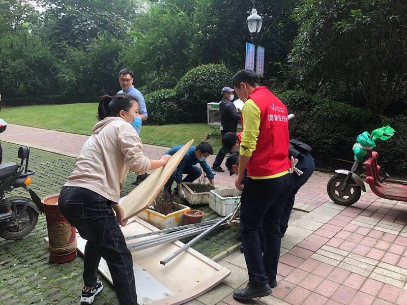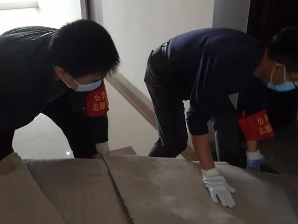 党员志愿者们满怀高昂的干劲,走到哪里,哪里就留下了他们挥洒的汗水。34层的高楼,他们从楼顶的消防通道,一层一层的走下去,碰到常年杂乱堆放的楼道垃圾,废弃的家具,他们没有卷起袖子就招呼同伴一起搬运下楼……