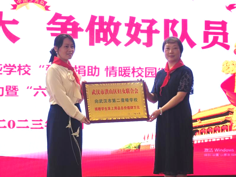 5月31日下午,“爱心捐助 情暖校园”捐助活动暨“六一”入队仪式在武汉市第二聋哑学校举行,洪山区妇联为武汉市第二聋哑学校送去160套价值4万元的床上用品。