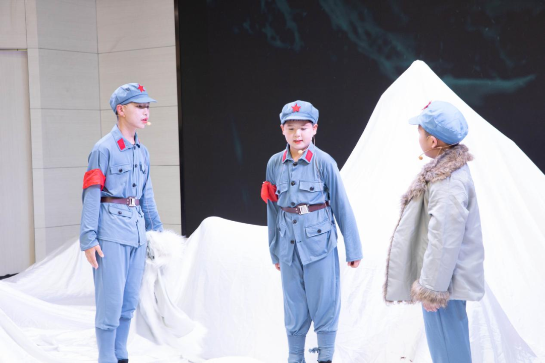 《学习二十大 诵书润童心》,队员们用真诚的吟诵,真挚的情感,表达了学习、践行二十大精神的坚定决心。随后,一群少先队员们以课本剧的形式呈现长征中的感人故事, 弘扬不怕任何艰难险阻,不惜付出一切牺牲的长征精神。