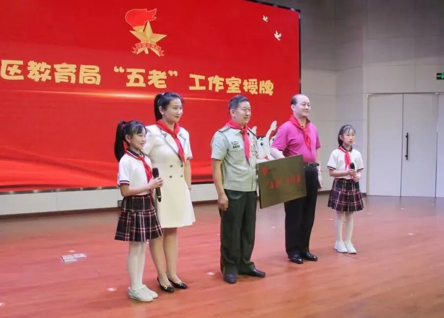 与会领导为“洪山区优秀少先队员”“洪山区优秀少先队辅导员”“洪山区优秀少先队集体”代表颁发荣誉证书。洪山区关工委主任刘少甫为区教育局“五老”工作室授牌。