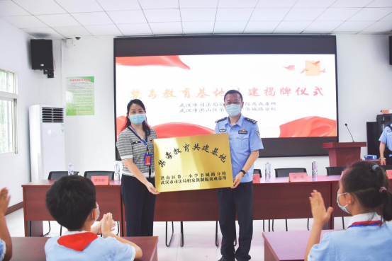 当天,武汉市司法局柏泉强制隔离戒毒所与洪山一小书城路分校举行了“禁毒教育共建基地”授牌仪式,戒毒所副所长陈勇为谭西影颁发了“思政课特聘教师”聘书。