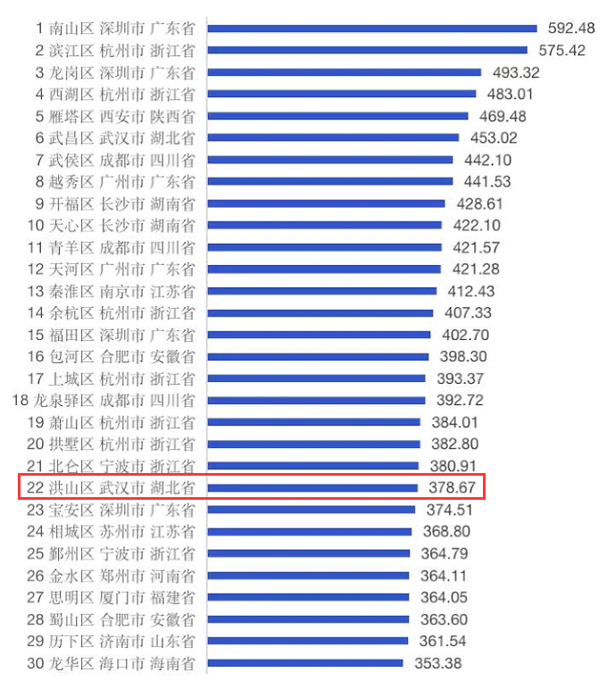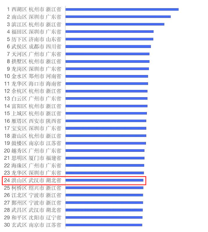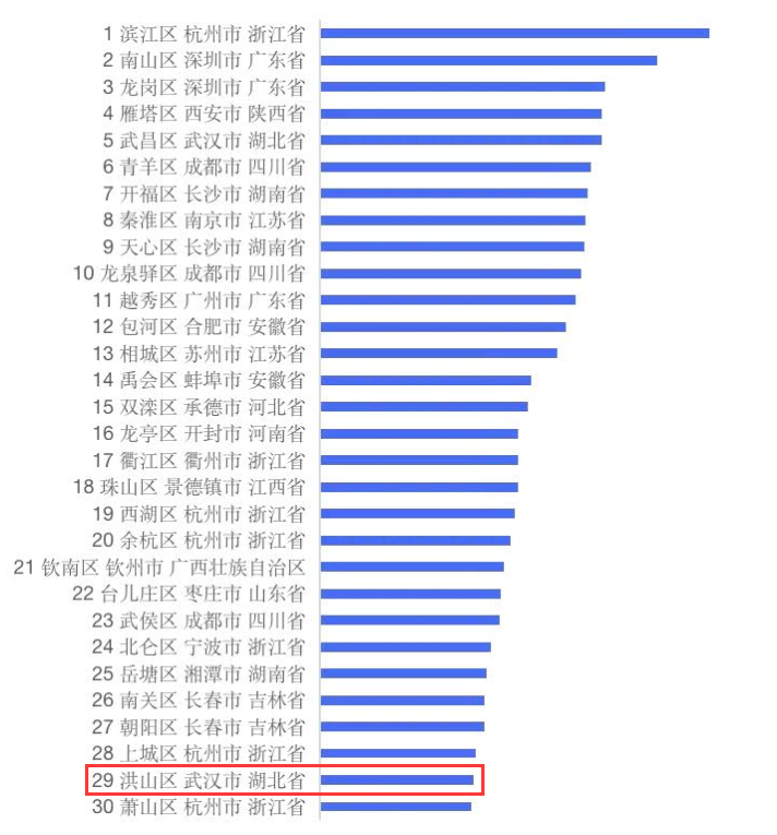 其中,洪山区入围中国文化产业竞争力30强,在文化产业综合发展、产业生产力、产业影响力、产业驱动力等方面表现亮眼。