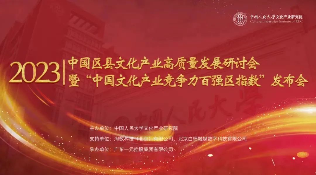 近日,在第十九届中国(深圳)国际文化产业博览交易会分会场,中国人民大学文化产业研究院举办了“2023年中国区县文化产业高质量发展研讨会”,首次重磅发布“2023年中国文化产业竞争力百强区指数”。
