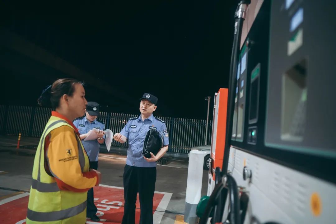 “你们的散装油加油处未贴有相关标识……”当晚,洪山警方对辖区加油站、加气站、危爆物品单位进行安全检查。在白沙洲大道的一处加油站,内保大队民警胡德烜认真地检查着加油站每一处不符合安全要求的地方,并向管理人员解释每一个被忽略的细节可能带来的严重后果。