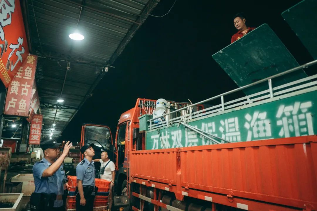 “再过几个小时,这儿会更热闹。”严辉介绍,晚上是水产区最热闹的时刻,这里各种水产品琳琅满目,新到的海鲜刚卸下来,买家就争相看货比价。市场里,不仅有众多前来进货的零售商,还有不少赶来“捕鲜”的市民。能否买到价廉物美的水产品,需要拼眼力,比速度,交易纠纷也时有发生。得益于7×24小时勤务模式,警务室能够全天候驻警,快速处置2个市场的警情,落实“派出所主防”,将各类矛盾纠纷化解在萌芽状态。