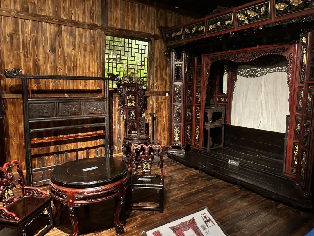 馆中,首先游客映入眼帘的就是一张古色古香的床,有个别致的名字——“三滴水床”,具有鲜明的土家族风格。据了解三滴水床来自湘西永顺,1988年从当地征集而来,是土司司长家的遗物。不过这名字可是有故事,源于湘西妹娃们出嫁时哭嫁,取泪水滴答之意。馆内工作人员介绍,“这床工序繁杂,整张床均由木头本身衔接,耗费工匠近千日。更牛的是,当时没图纸,所有的东西靠工匠记忆,很不容易。”此外,还有蜡染、壮锦、土家锦、黎锦、侗锦、剪纸、傩面具,及中国南方古代各民族具有代表性的文化遗物——铜鼓等藏品。