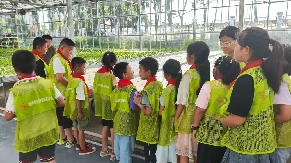 工作人员讲解了如何通过控制光照、温度和湿度等因素,为蔬菜提供最佳的生长环境,向孩子们展示了无土栽培和水培种植的方法,科普了“蔬菜-鱼类”混养系统,让孩子们深入了解农业技术的创新和可持续发展。