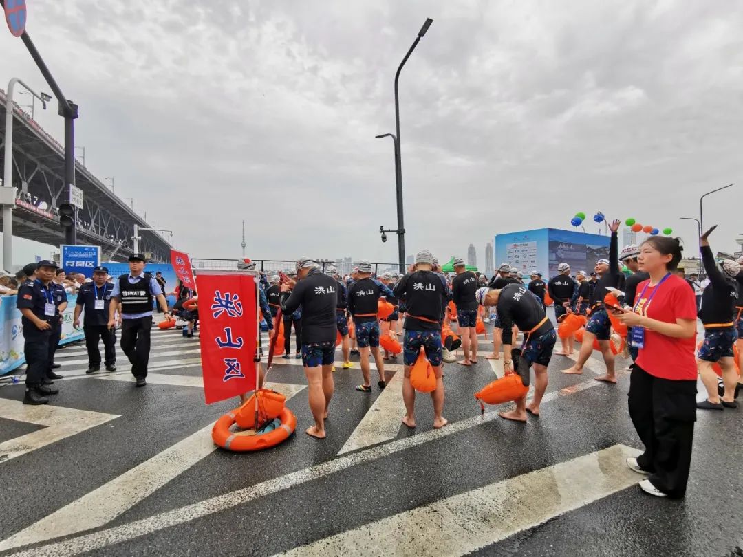 据了解,为积极做好本次赛事组织工作,洪山区文化和旅游局(体育局)历时一个半月,集结队员们在东湖长天楼进行了8次集中训练,确保了本次洪山方队安全、顺利渡江。该局相关负责人表示,经过多年来的刻苦训练,磨砺配合,洪山区渡江方队已经成长为一支成绩优异、纪律严明、作风顽强的群众方队。