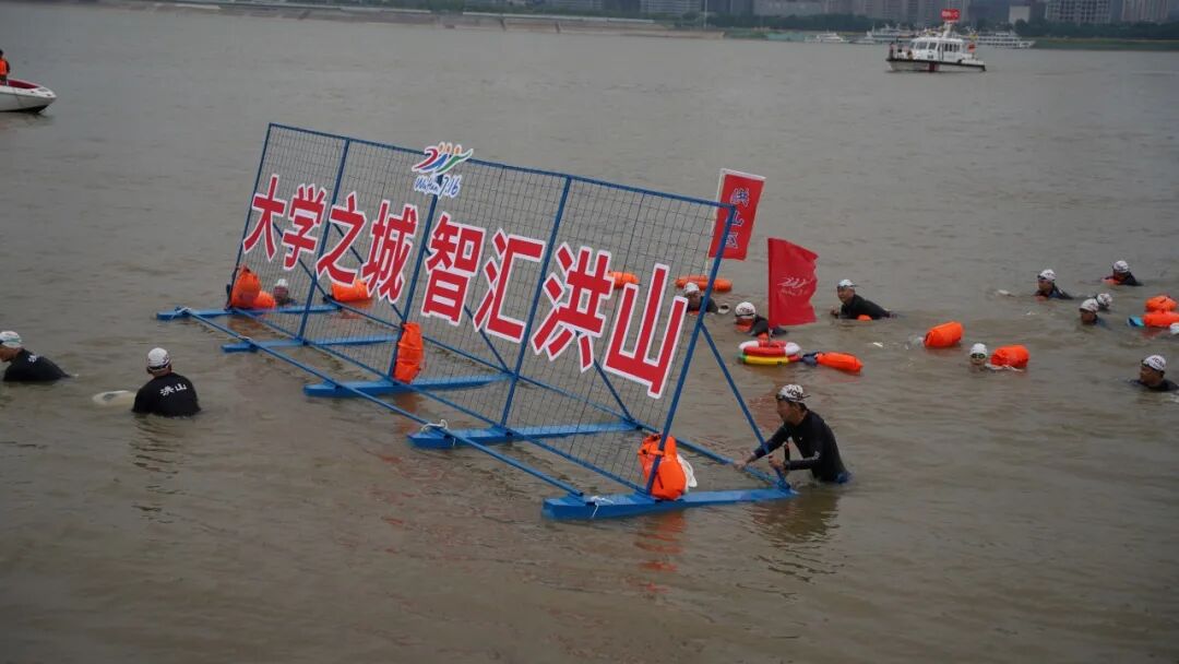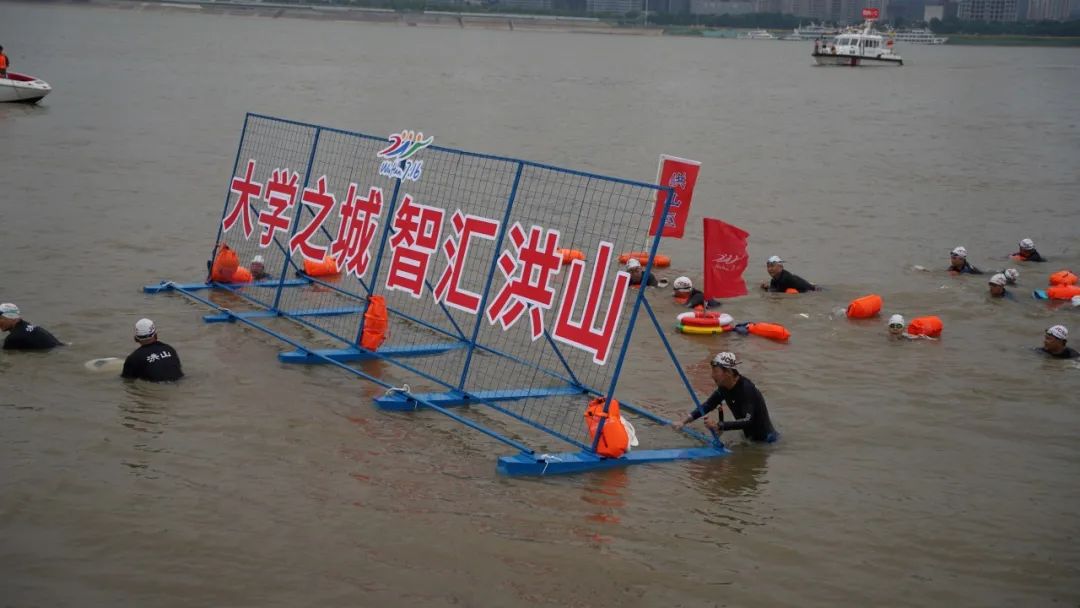本届渡江节由个人抢渡长江挑战赛和群众方队横渡长江活动两部分组成,个人抢渡挑战赛于8:10分鸣枪,群众方队横渡在10:05开启。记者看到,洪山方队第20个出场,队员们喊着“大学之城、智汇洪山”“武汉加油”的响亮口号,从武昌汉阳门1号明口码头下水,浩浩荡荡横渡至汉口江滩三阳广场后成功登岸,游程约6000米。