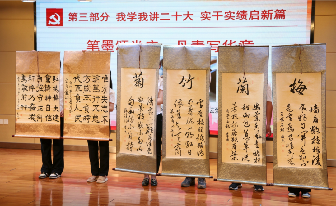 在洪山街道保利公园九里社区,梅、兰、竹、菊等多幅飘逸的书法作品上台首秀,引发一阵喝彩。台上展示的廉洁书法作品紧扣反腐倡廉主题,或抒怀以言志,或激励以鞭策,用生动的笔触宣传反腐倡廉的思想。据悉,本月洪山街道保利公园九里社区党委联合洪山区建设局机关党支部、华师附属保利南湖小学党支部、红旗社区党委、南湖社区党总支共同开展了特色廉洁活动,除了廉洁书法作品展示,还用情景剧、演讲等方式宣传廉政文化。