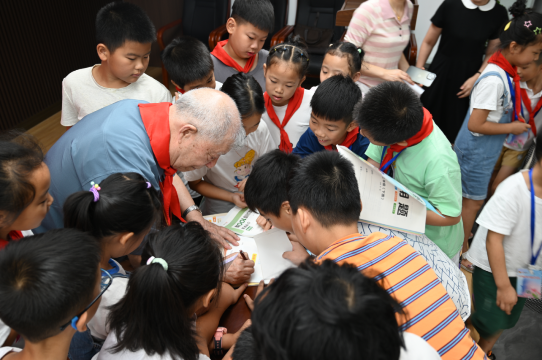 “如今,学习已经成为我生活中的一种追求、一种乐趣,成为我紧跟时代的有力支撑,是我人生的必修课。”年近九旬的周义仁对待学习严谨认真的态度,深深打动了孩子们。课程结束,大家簇拥着周义仁纷纷请他在自己的作业本上签名留恋。小学五年级学生刘艾俪更是激动得表示:“听了周爷爷的话,我要认真学习,以后再也不沉迷游戏了。长大以后,我也要当一名光荣的解放军战士!”