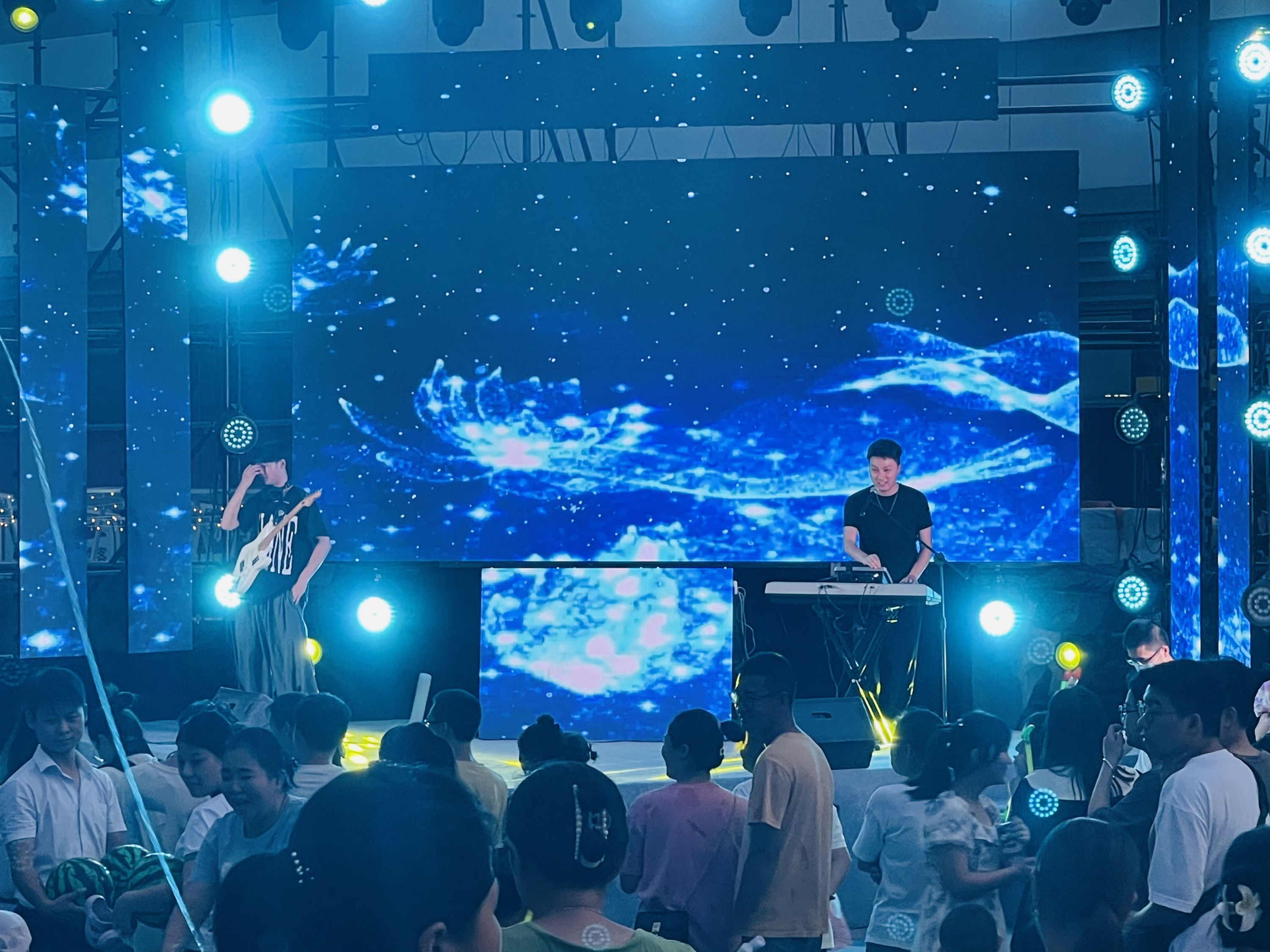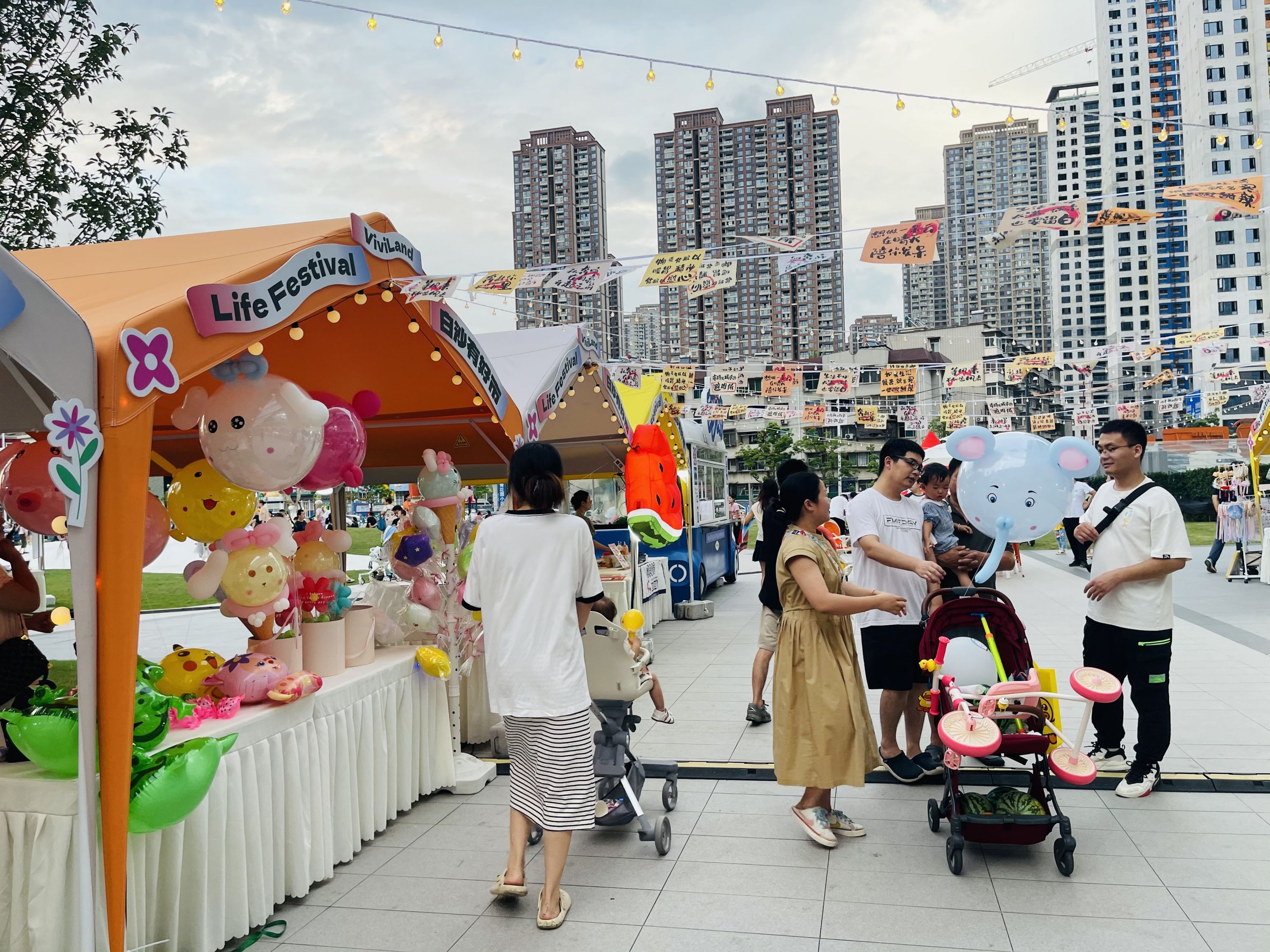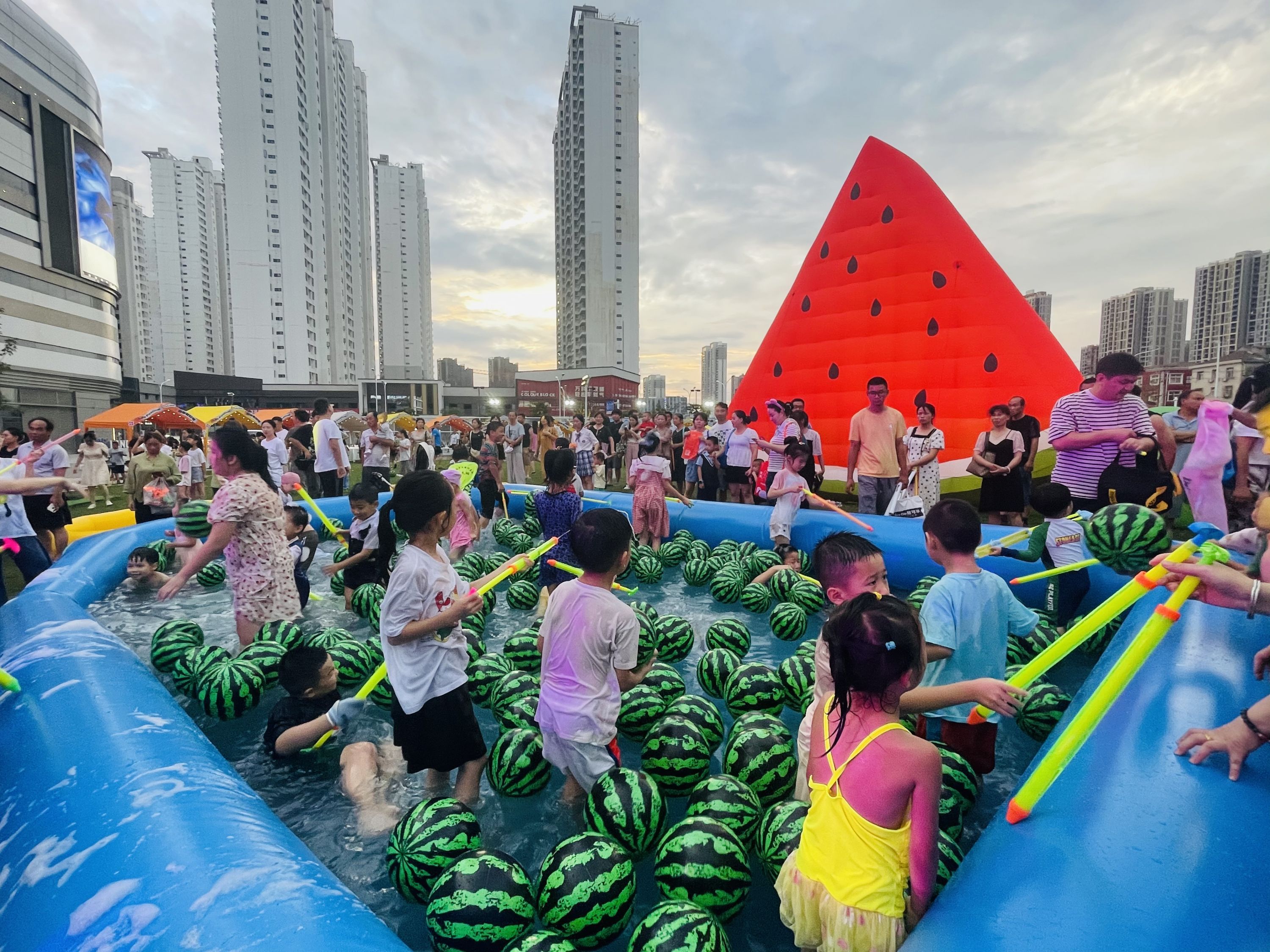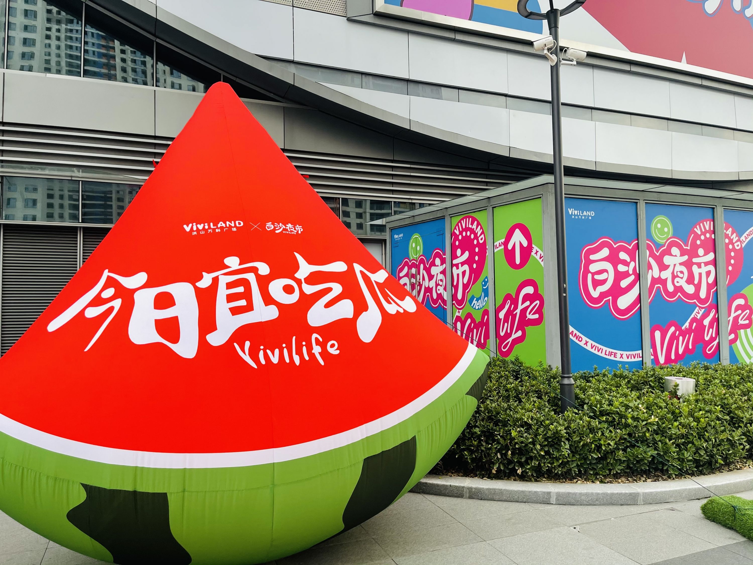 活动现场,近百家摊主集结亮相Vivi大草坪,天马行空的创意点燃夏日热情力;瓜田泼水电音节燃燥上演,水花四起助阵开市,电音节奏不停歇;充气城堡让市民感受水球大战的快乐;更有6米巨型西瓜系列装置惊喜亮相,成为拍照打卡热门地。
