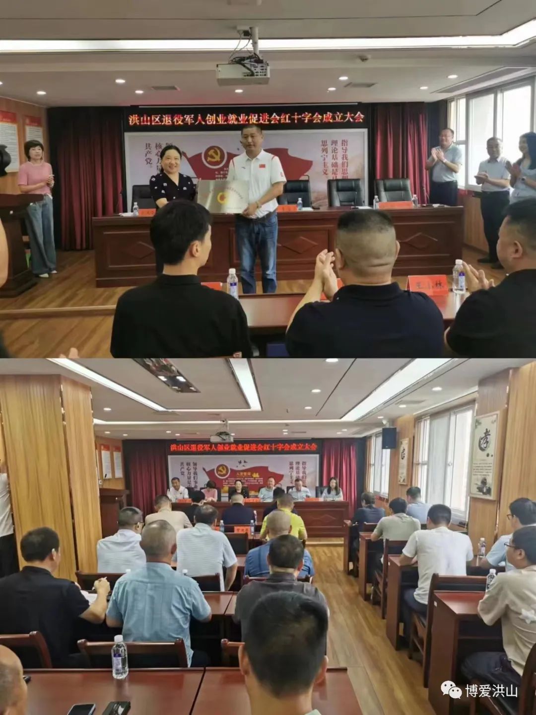 在建军96周年到来之际,为了更广泛的宣传红十字“人道、博爱、奉献”的志愿服务精神,扩大红十字运动的影响力,助力退役军人群体在洪山区更好发展。2023年7月30日上午,在洪山区退役军人事务局10楼会议室,洪山区退役军人事务局、洪山区红十字会共同举办了“洪山区退役军人创业就业促进会红十字会成立大会”。