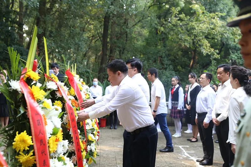 上午10时整,洪山区四大家班子成员、省林科院负责人,以及区委宣传部、区退役军人事务局、区文化和旅游局、区教育局、区总工会、团区委、区妇联、卓刀泉街等单位主要负责人和学生代表共100余人,来到卓刀泉伏虎山烈士陵园,共同缅怀烈士功绩,弘扬烈士精神。