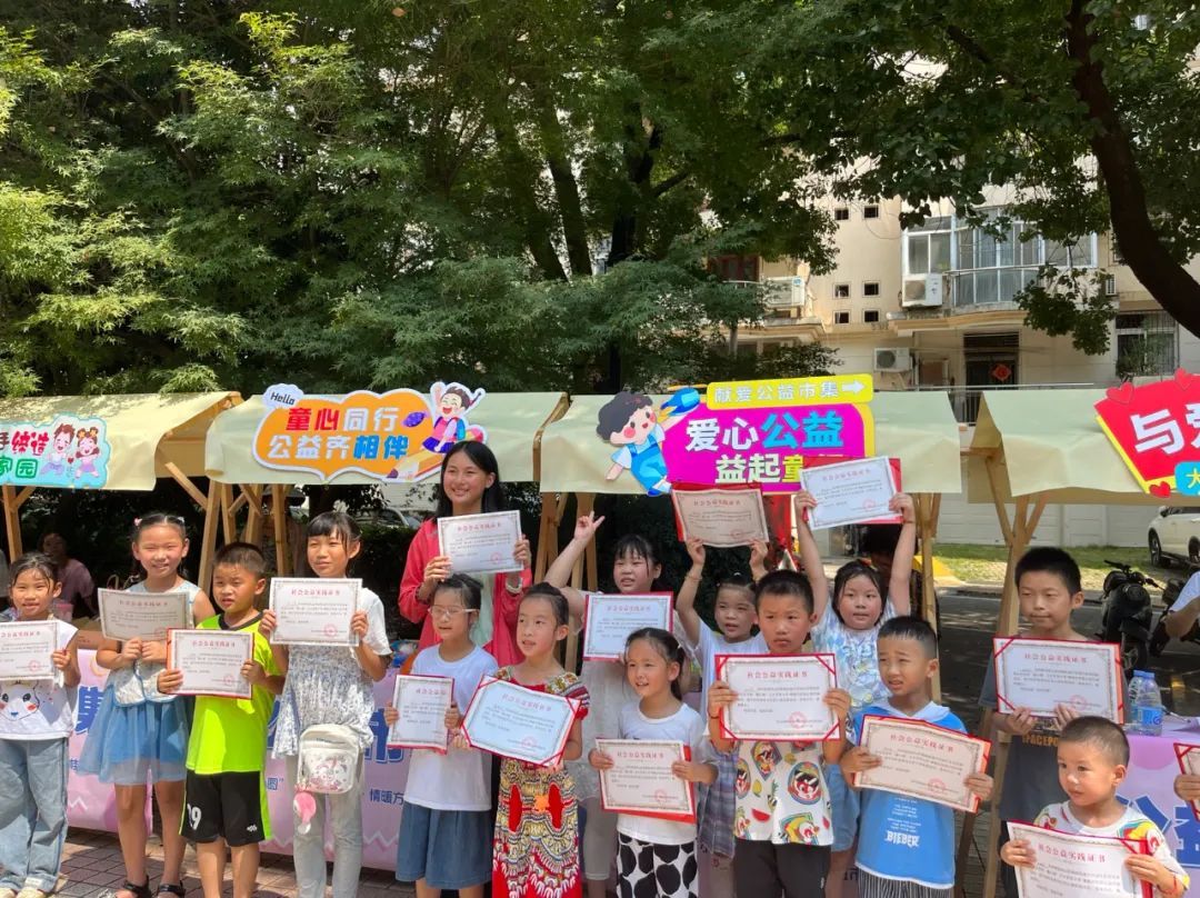 一个家庭的孩子凝聚的是家庭,多个家庭的孩子凝聚的便是社区。方桂园社区开展“童心圆”之大手牵小手·情暖方桂园公益市集活动,18组亲子家庭组成6个义卖摊位,邻里长积极参与前期宣传,志愿者全程协助,一片浓浓的“烟火气”。“小摊主”们将义卖款自愿捐赠给社区慈善基金,社区为“小摊主”颁发荣誉证书,收获了爱心义卖精神,更营造了“共同”氛围。