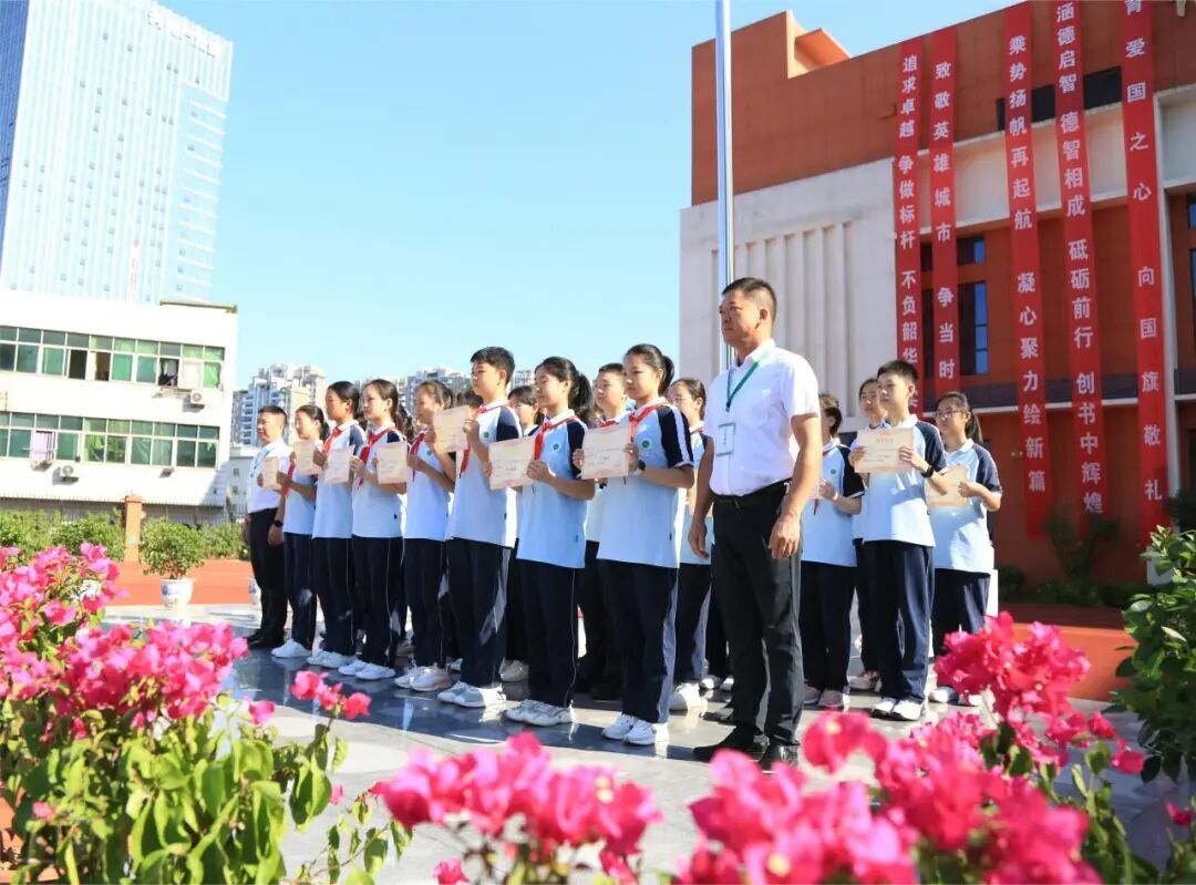 上午八点半,记者在书城路中学看到,伴随着响亮的口号声,湖北工业大学国旗班退役军人组成的国旗护卫队,身着盛装、整齐列队,迈着铿锵的步伐,将国旗护送入场。“升国旗,奏国歌!”伴随着嘹亮的国歌声,鲜艳的五星红旗冉冉升起,老师行注目礼,少先队员敬队礼,每一个敬礼和专注的目光,都饱含着大家对祖国无限的热爱。当天。该校为学习标兵及进步学生颁奖,学生和家长代表发言。