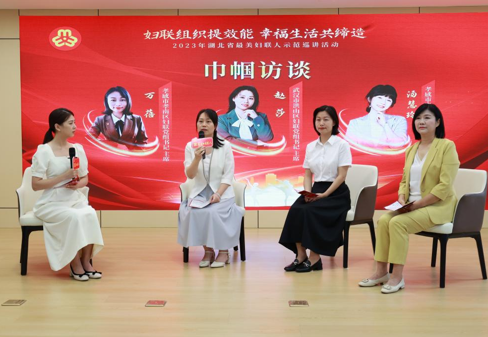 近日,省妇联举办2023年湖北省“最美妇联人”示范巡讲活动,活动现场洪山区妇联主要负责人接受巾帼访谈,就“推动妇女小组建设,幸福生活共同缔造”分享经验做法。