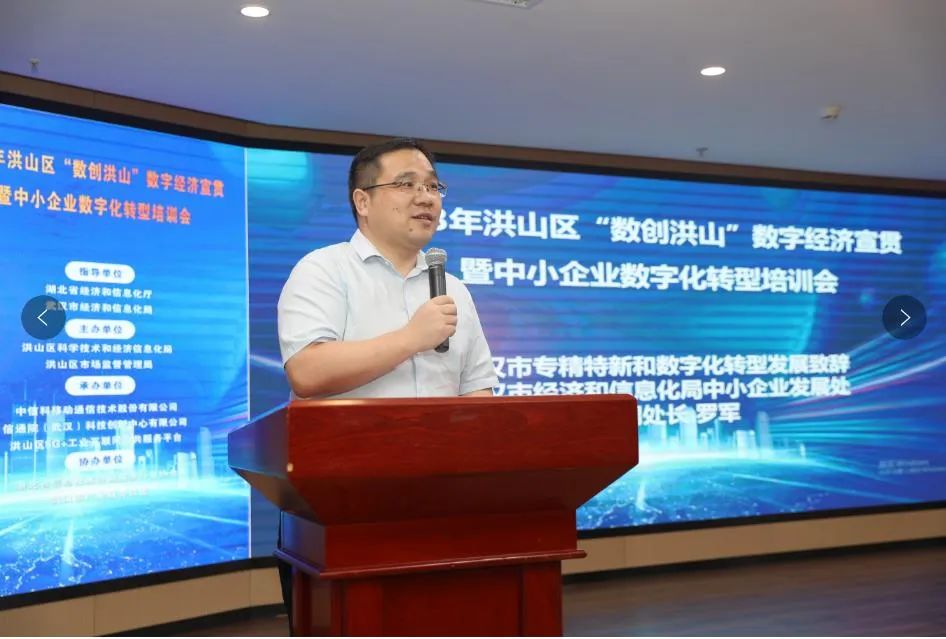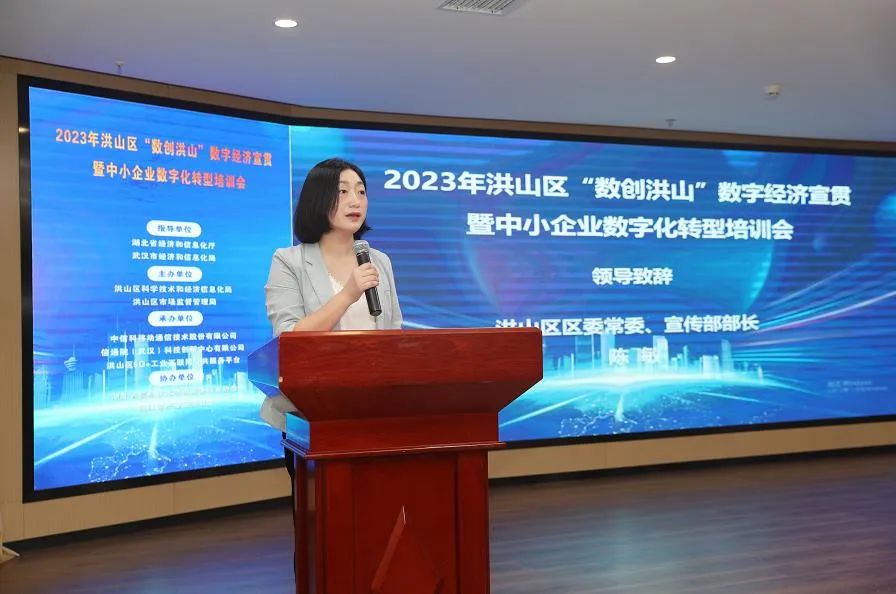 9月8日下午,洪山区组织开展“数创洪山”数字经济宣贯暨中小企业数字化转型培训会专场活动,省、市、区经济和信息化部门联动,部署推进全区“专精特新”中小企业数字化转型工作。区委常委、宣传部部长陈敏和市经信局中小企业发展处处长罗军分别致辞。区科经局、区市场监管局、中信科移动通信、信通院(武汉)科技创新中心及全区数字化转型企业相关负责人等参加活动。