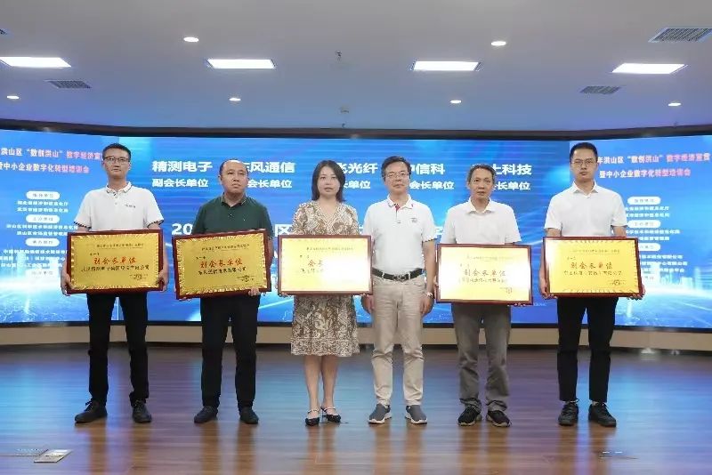 活动为湖北省信息技术咨询服务行业协会、武汉市产业服务联盟进行了授牌,并为16名涵盖科研服务、产业创新服务、数字化转型、金融服务、权益服务五大领域的科研院所及高校专家颁发武汉市产业服务联盟专家聘任证书。随后,在7家会长、副会长单位的见证下,洪山区数字经济发展协会正式成立,该协会在区科经局的指导下,由全区36家数字经济重点企业发起,旨在加快全区数字经济的项目招引,搭建大中小企业交流合作平台,促进企业融通发展。