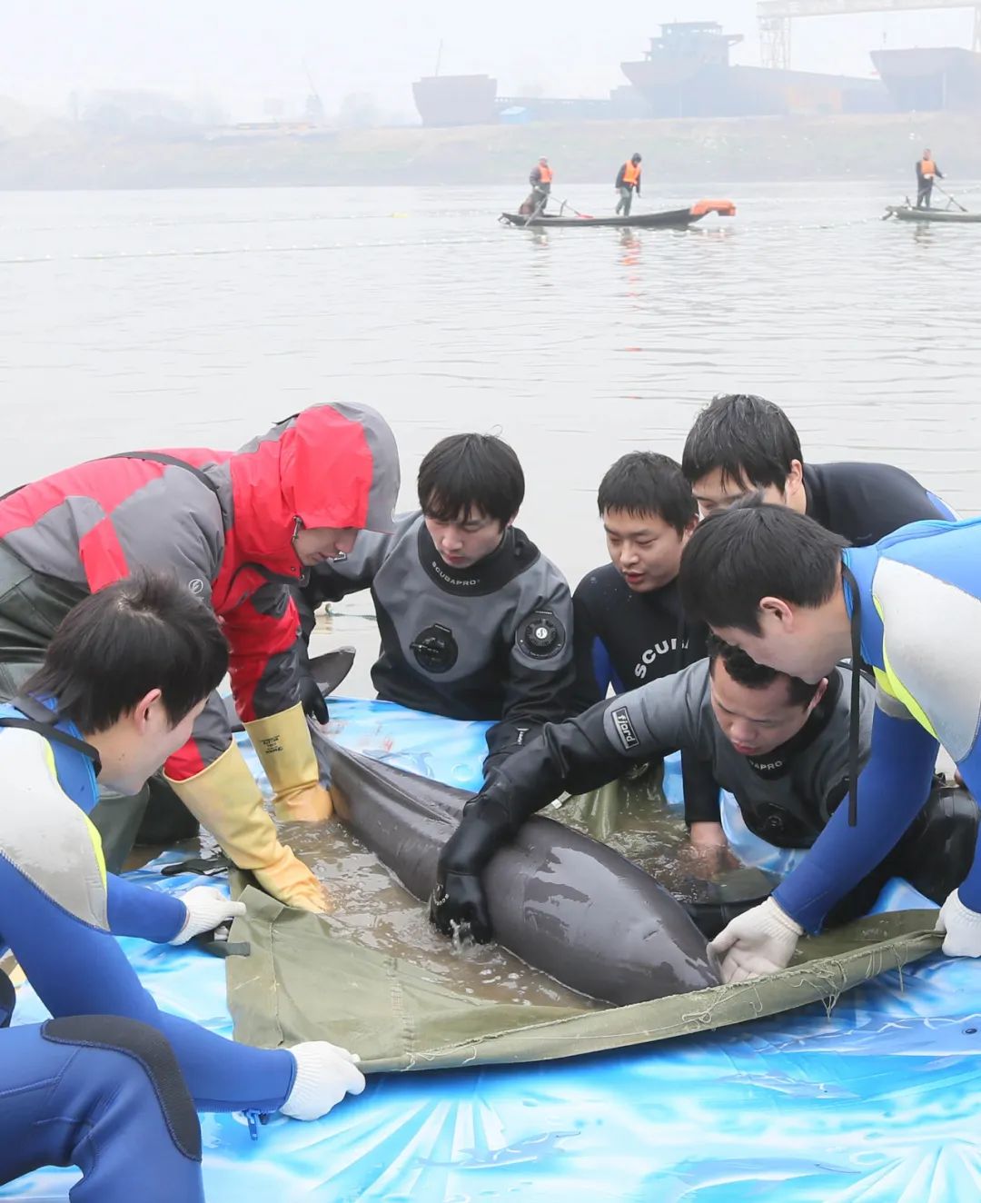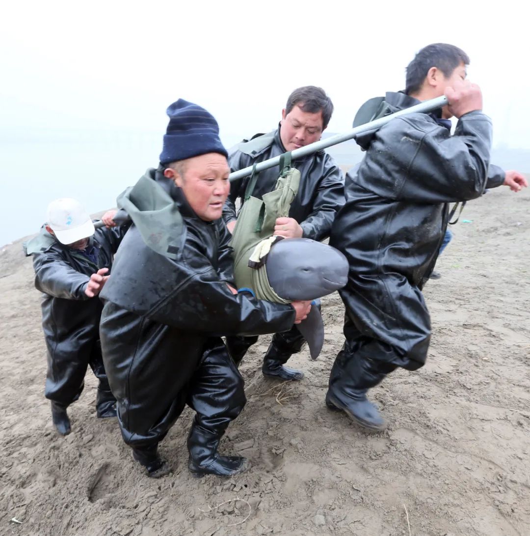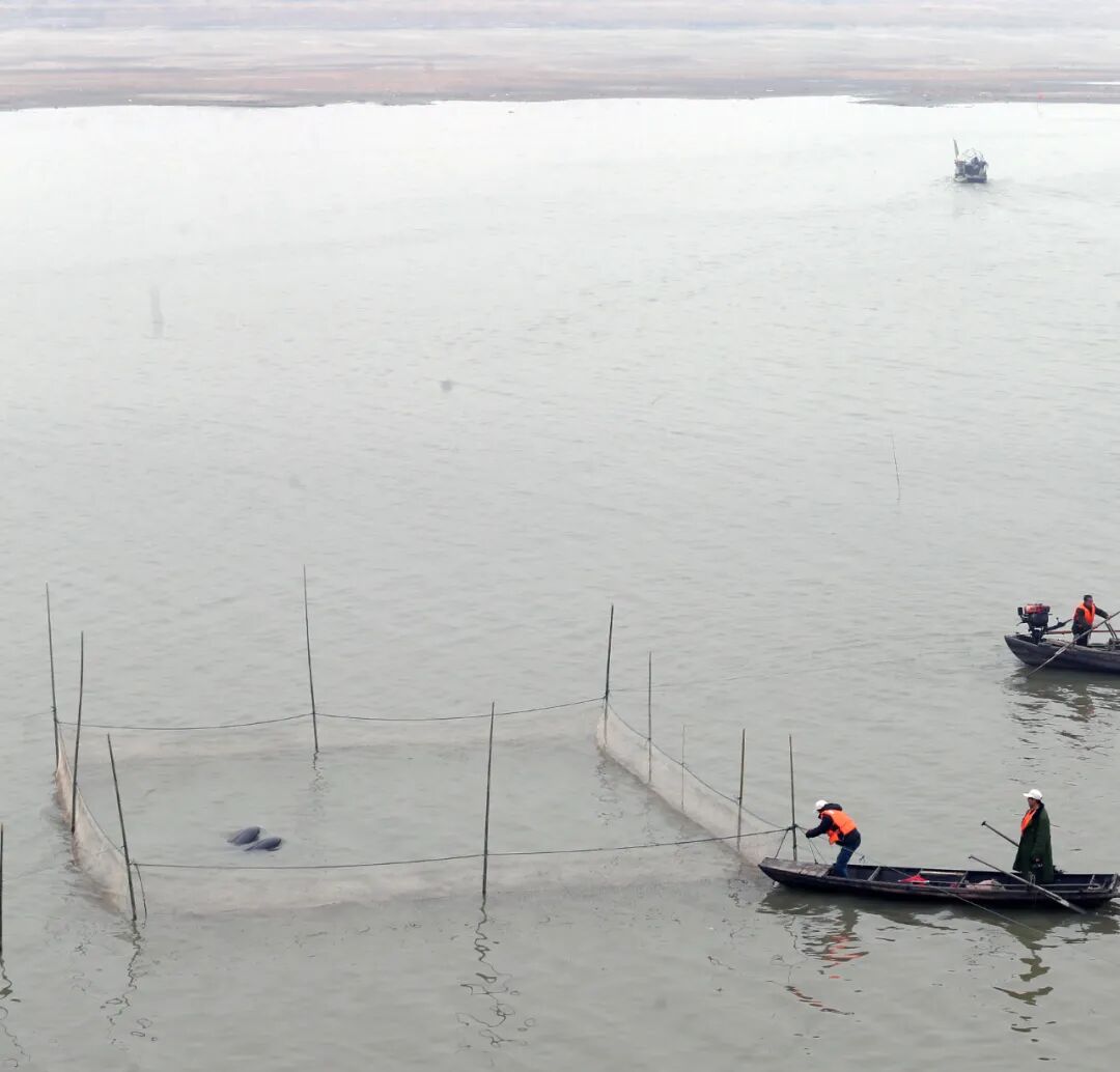 时值冬日,长江水位下降,江豚所处水域处于“半隔断”状态。江豚想要自行离开,须待次年三四月水位上涨后才行。出于对江豚安全的考虑,保护人员决定将两对母子豚捕捞起水,放归至湖北石首天鹅洲白鱀豚国家级自然保护区。
