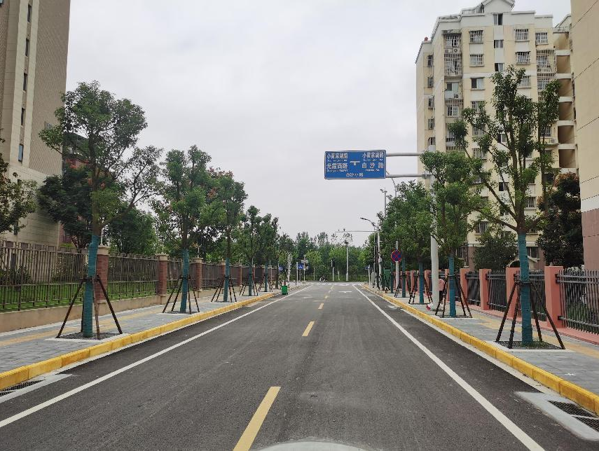 道路修建过程中,项目还充分考虑周边小区居民及学校意见,调整了洪山实验小学段路面设计标高,全线增设了6处道口,采取分段打围,建成一段开放一段的模式,极大方便了市民通行。此外,该项目还对道路排水、照明、绿化景观等方面进行了系统改造,为居民提供更宜居的生活和出行环境。