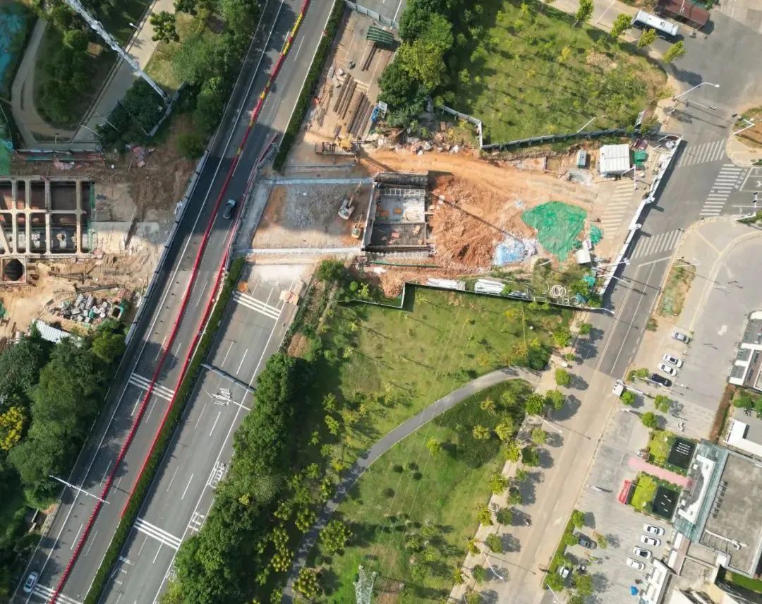 2023年3月12日,项目进入施工关键时期——下穿青郑高速地下通道结构施工阶段。为尽量减少施工对青郑高速通行影响,洪山建投、洪山市政公司锚定“国庆节前恢复高速双向通车”目标不动摇,克服项目高速断面场地狭窄,地下管线密集、材料运输难、协调难度大等多项难题,同时积极应对雨季汛期和夏季高温挑战,合理安排施工计划,延长有效施工期;结合深基坑施工、通道结构支架施工等方案,进行多道工序同步衔接作业;运用安全防范技术,保障现场安全施工。