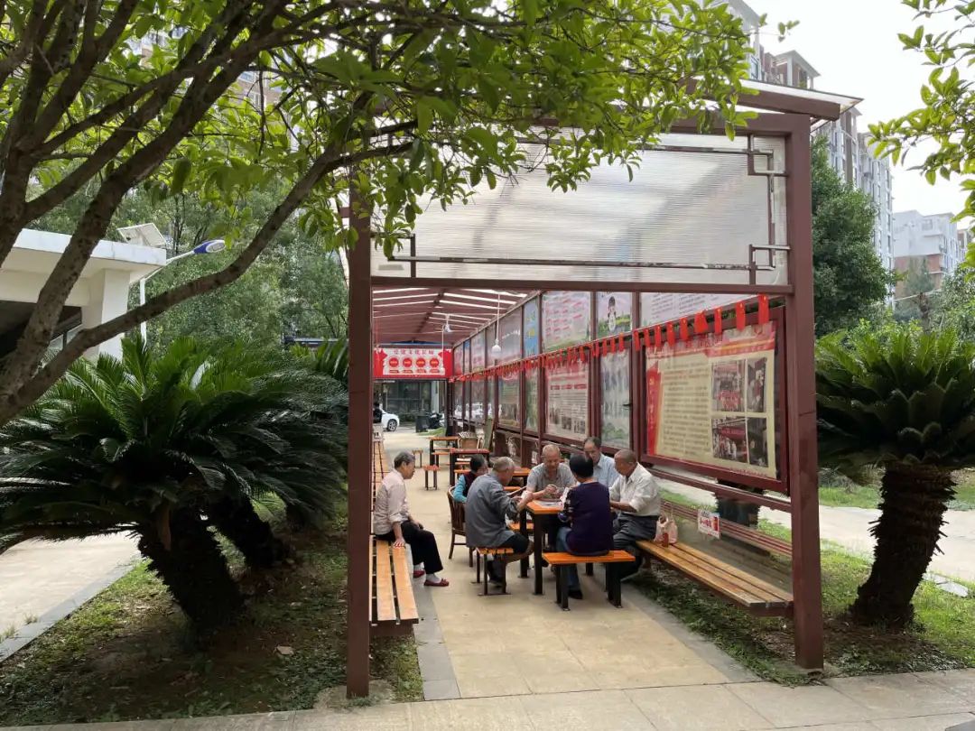 随着中秋国庆佳节的到来,荆楚大地炙热消散,凉风习习。十一长假期间,位于洪山区阳光在线小区的“社区休闲长廊”正式投入使用。试运行一个月以来,这个拥有棋牌桌等各类休闲娱乐设施的长廊深受居民喜爱。