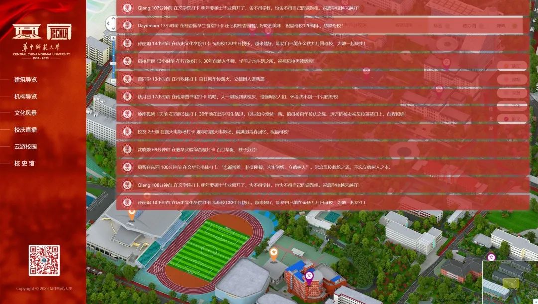 此外,学校还为返校校友提供了校庆专属WiFi和GIS智能校园地图服务。10月1日—3日,有39607人访问了GIS校园地图,并留下了695条校庆祝福留言。