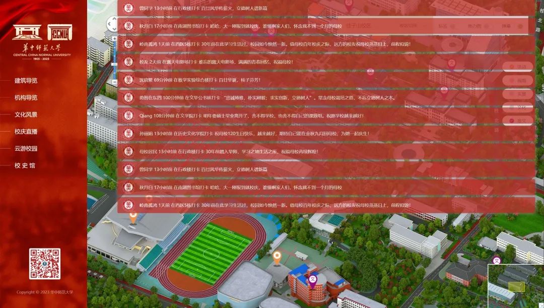 学校充分利用“数字华师”建设成果,推出“华中师大校友小程序”,截至10月5日,已认证校友身份用户数达5.6万,领取电子校友卡的用户总数4.1万人。9月28日-10月4日,小程序访问人数的增量达3.6万人次。校庆期间,校友凭电子校友卡畅行校园。10月1日—3日,各校门进人员达11万人次,车辆26000余辆次。