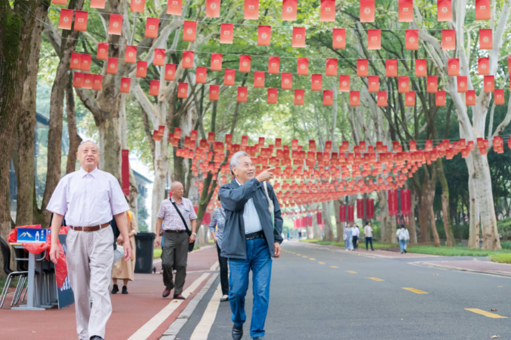 不论是白发苍苍还是青春年少再见面,道一声你好又重逢,来一个拥抱执手同游校园共叙桂子浓情
