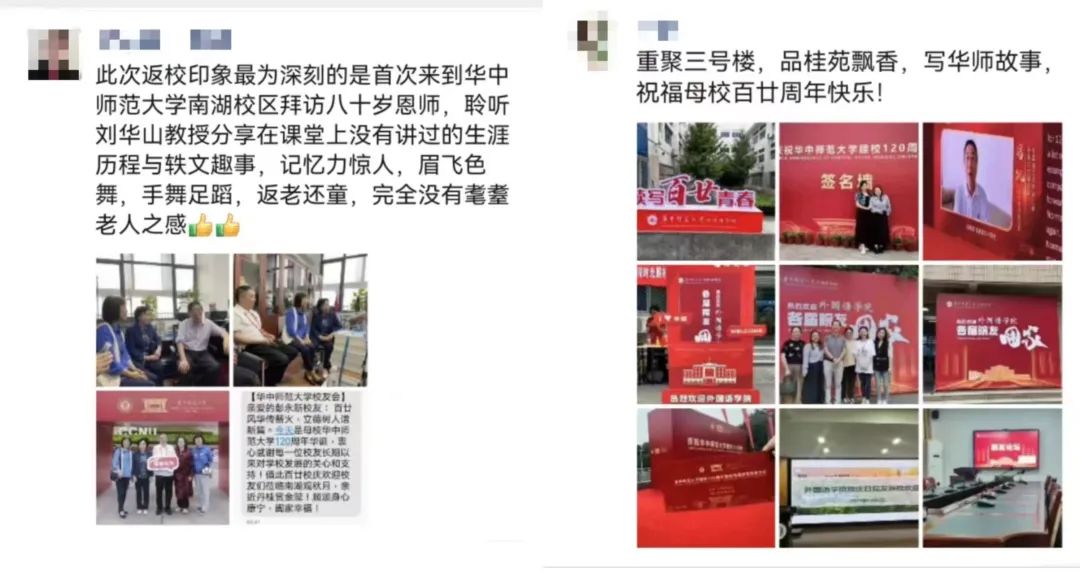 我们毕业的时候是华师100周年校庆,今年刚好是毕业20周年,也是华师的120周年校庆,所以就回到了母校。回到华师感觉很亲切,有些地方依旧很熟悉,但华师也发生了很多变化,硬件软件上都有了更大的提升。我感觉很自豪,祝愿华师越做越好,学科排名越来越高,影响力越来越强!
