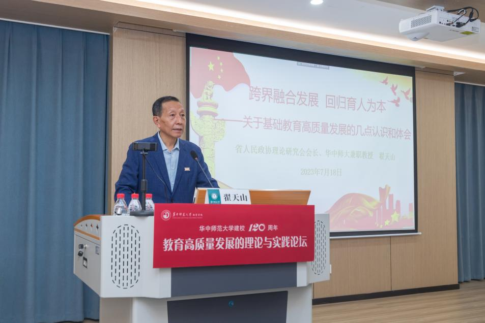 教育学院校友、湖北省政协原秘书长、理论研究会会长翟天山在“教育高质量发展的理论与实践”校友论坛上作主题报告