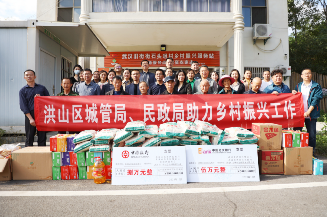 此次慰问活动中,武汉石门峰纪念公园有限公司、湖北广美城市运维服务有限公司分别向石咀村捐款8万元、5万元。