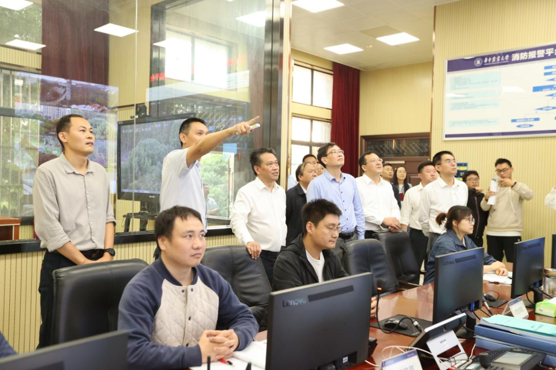 随后,调研组一行来到华中农业大学,参观华中农业大学调度指挥中心,听取华中农业大学消防物联网综合管理平台和狮子山森林防火设施的介绍。华农植被繁茂,林文书十分关心森林防火监管机制,他询问校园智能接警的具体流程以及面对突发重大情况的应急处理机制,叮嘱有关部门和高校要加强警情互通互联,强化防微杜渐,守牢安全底线。