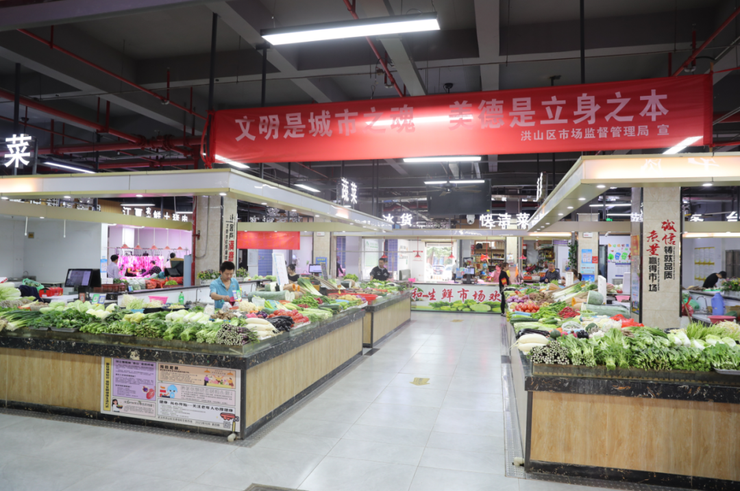 整齐的摊位、干净的地面、敞亮的环境,文明宣传标语、各类公示信息醒目可见……走进洪山区洪山街道北港佳和生鲜市场,迎面而来的烟火气息浓郁而温馨。这里是由市驻区第十一督导组精心指导、区市场监管局联合区复审办打造的洪山区农贸市场环境“样板市场”。
