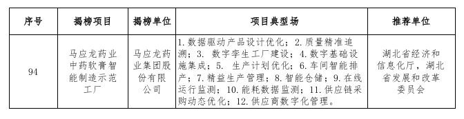 近日,工业和信息化部公布了2023年度智能制造示范工厂揭榜单位和优秀场景名单,洪山辖区企业马应龙药业集团股份有限公司揭榜项目“马应龙药业中药软膏智能制造示范工厂”入选示范工厂揭榜单位。