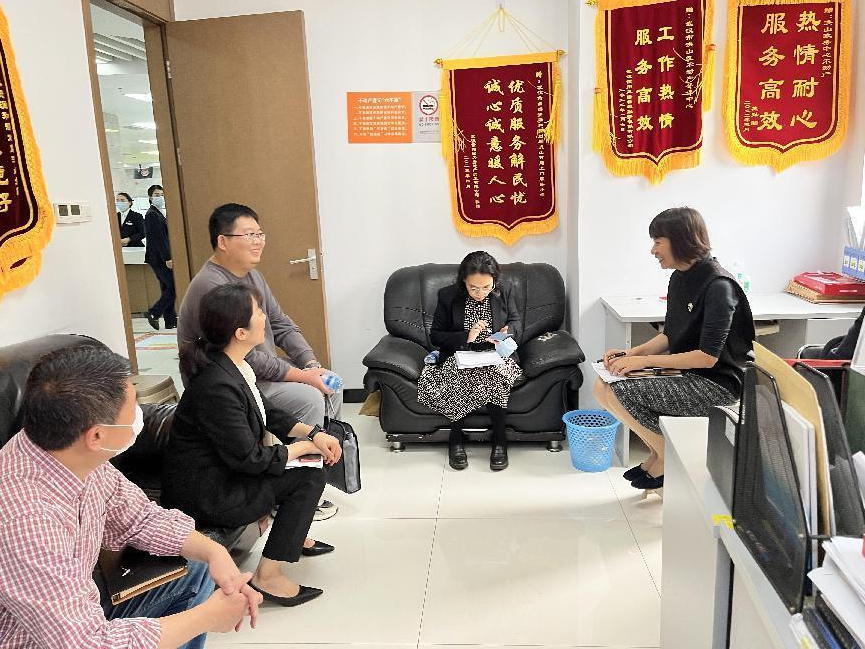近日,省自然资源厅检查组到市自然资源和规划局洪山分局开展不动产登记大厅“体检”交叉检查工作,洪山分局相关负责人陪同检查。