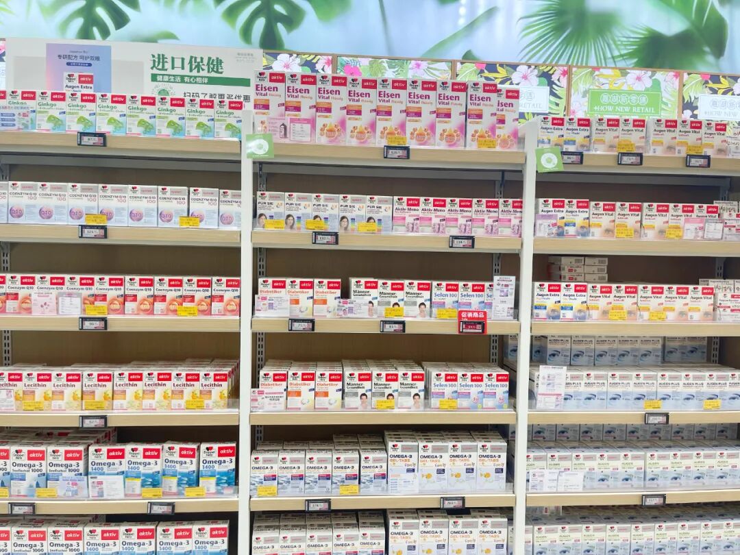 在保健品专区,来自澳大利亚的swisse 最引人注目。店员小姐姐介绍,该产品有40个品类,是该店在售保健品中,系列、品类最全的。除此之外,还有澳士康、健安喜、益倍适、德国双心等知名品牌,补铁、护眼、护心脑、稳血压的一应俱全.....这些对于中老年人来说,都是不错的选择。