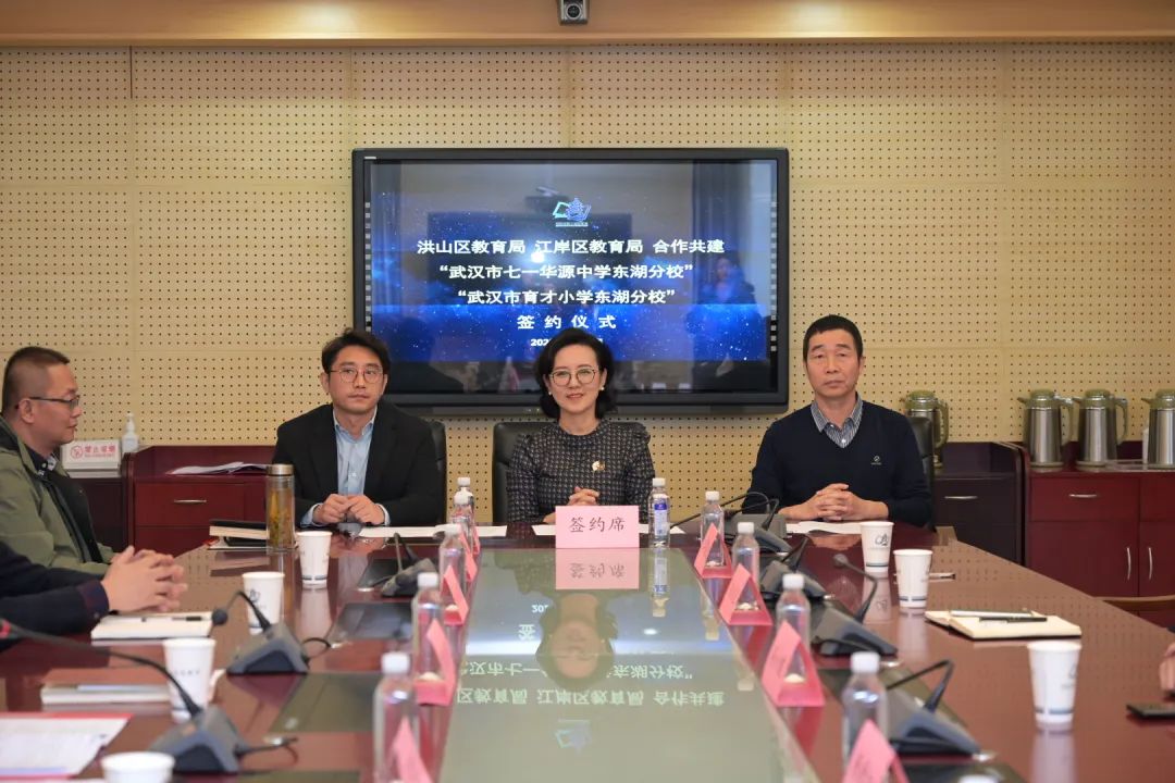 11月9日,武汉市育才小学东湖分校、武汉七一华源中学东湖分校签约仪式顺利举行。洪山区教育局联手江岸区教育局,首次跨区域合作办学,在东湖生活区引入“育才”“七一”两大优质教育品牌。