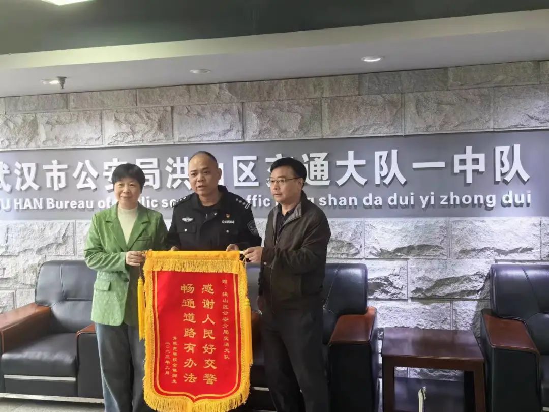 11月9日上午,武汉青翠苑学校负责人将一面印着“感谢人民好交警 畅通道路有办法”的锦旗送到洪山区交通大队一中队营区,感谢洪山交警解决校园周边交通问题,为学校师生创造了安全畅通的出行环境。