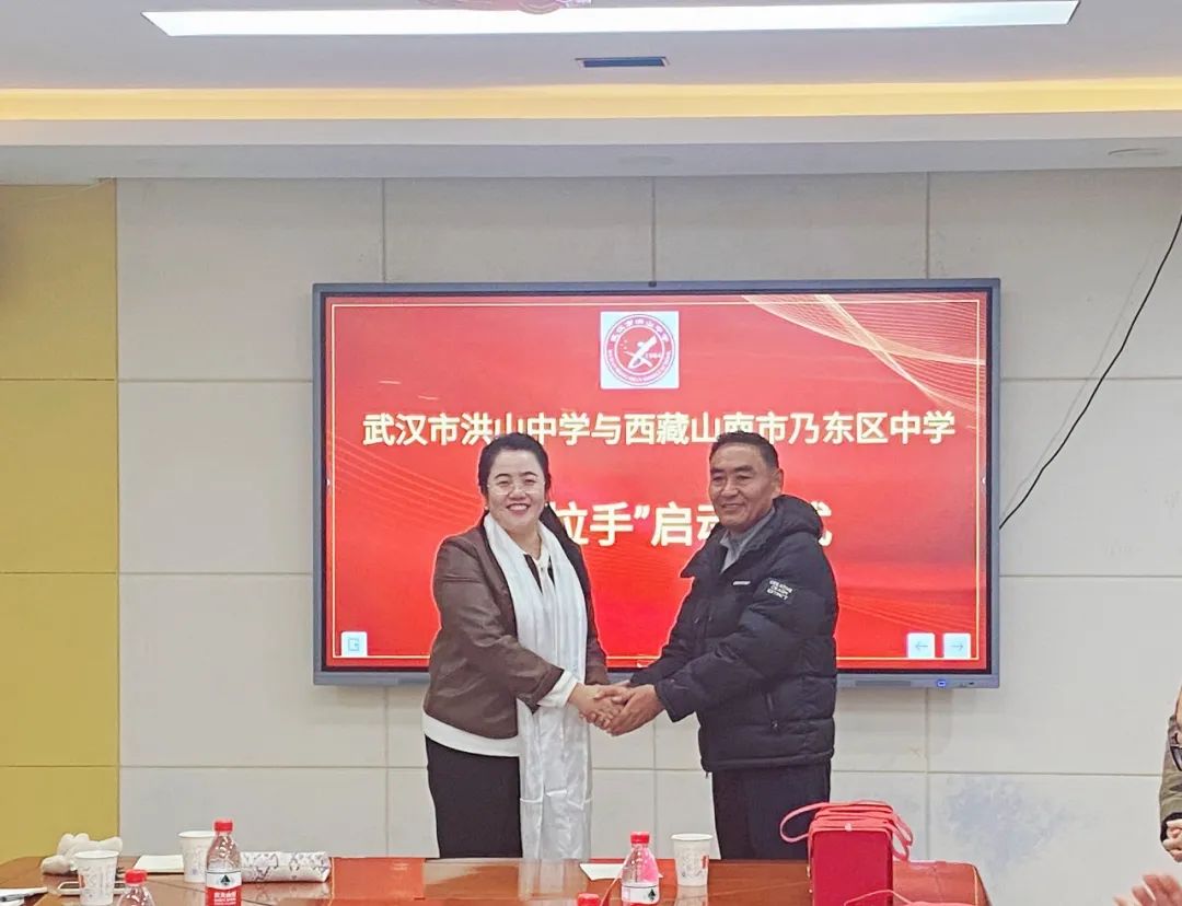11月22日,武汉市洪山中学与西藏乃东区中学师生联合开展“汉藏两地少年手拉手 共叙民族团结心连心”青少年交流活动暨“汉藏学校手拉手”启动仪式。