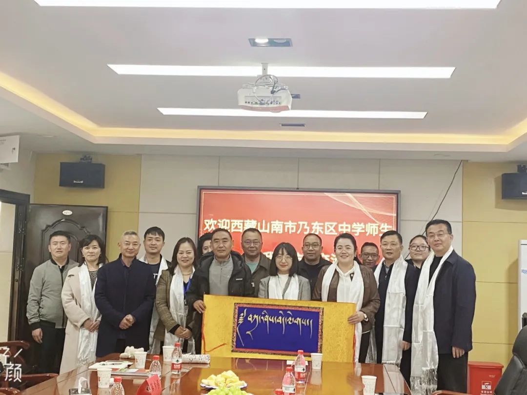 ▲乃东区中学向洪山中学敬献哈达并赠送书法作品