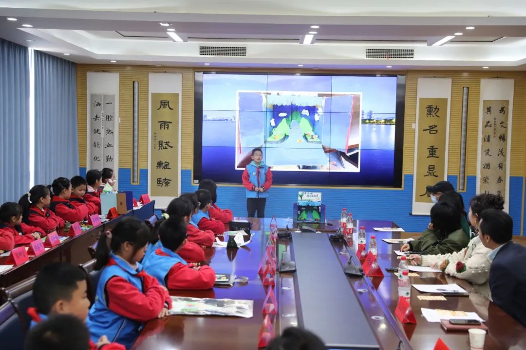 “我画的是地球上最后一滴水,看起来更像人类自己的眼泪。提醒我们要节约用水,守护我们共同的家园……”来自该校五年级的10名“小小”民间河湖长和12名小学生志愿者依次走上讲台,介绍各自手工作品的创意和内涵。22个作品中,有绘画、泥塑还有模型,或灵动,或澎湃,或壮阔,不仅富有想象力,而且传递出对保护河湖的独特见解。