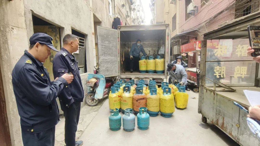 12月4日,洪山区城管执法局燃气热力管理站联合和平街综合执法中心、梨园街派出所查获一处非法储存瓶装燃气点,安全转移燃气钢瓶34只,违法当事人或将被拘留。