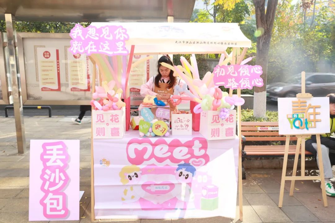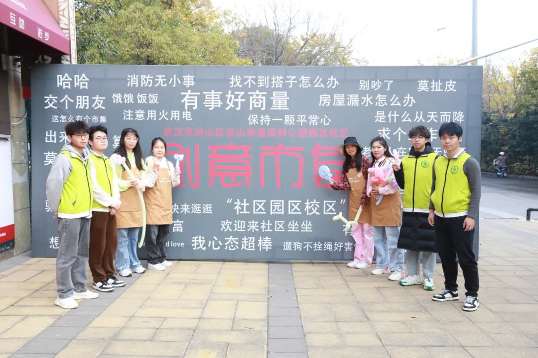 “想找人唠唠嗑”“找不到搭子怎么办”“出来耍耍”,12月8日,洪山街道保利心语西区社区门前搭起了写满俏皮话的创意市集“门头”,保利心语西区社区工作者、武汉城市职业学院大学生志愿者和创意天地园区企业结伴“摆摊”,钩织、丝网印、无人机科普、剪纸、非遗捏面人......23个集便民服务、创意文化、互动交友、美食品鉴、企业服务为一体的创意摊位在社区门前整齐排列,吸引了不少居民前来打卡。