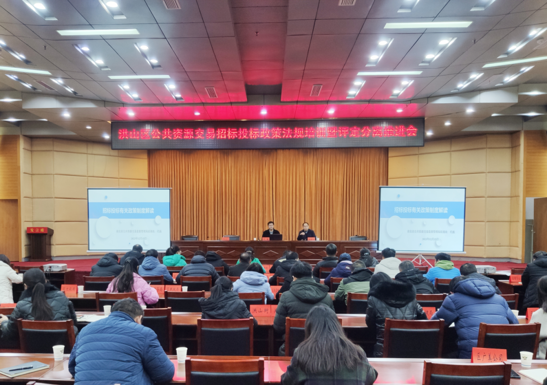 12月15日,洪山区组织召开了公共资源交易招标投标政策法规培训暨评定分离推进会。区公共资源交易管理委员会27家成员单位、10个街乡以及相关平台公司负责招标投标工作的分管领导与负责人参会。