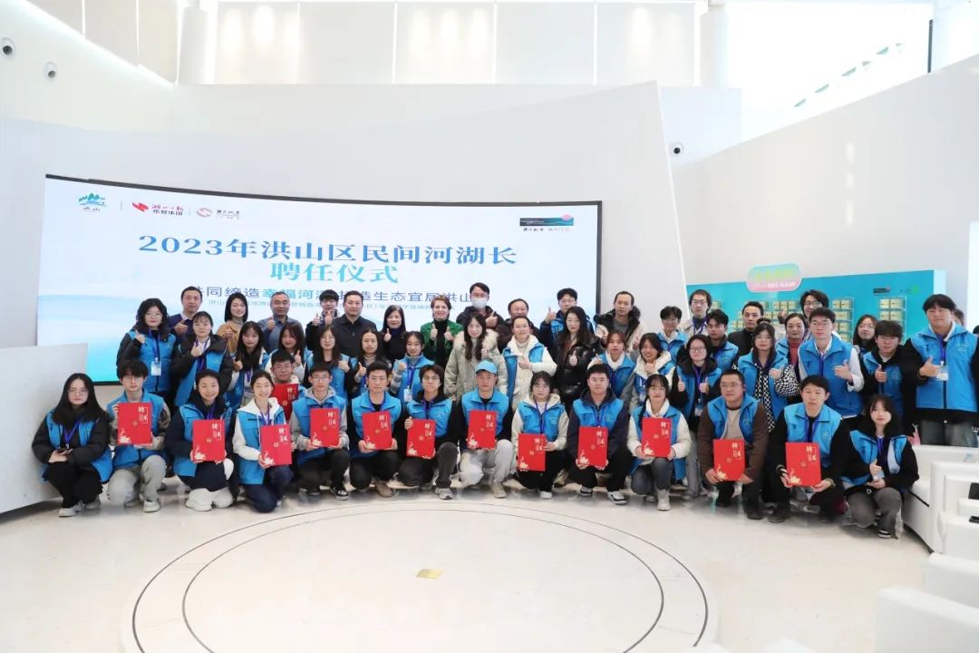 揭牌聘任环节,洪山区河湖长制办公室负责人与楚天都市·春水行云项目负责人共同为杨春湖湿地公园(东区)生态研学基地揭牌。该基地位于杨春湖湿地公园(东区),拥有得天独厚的生态基底,未来,在区河湖长制办公室、区园林局、洪山生态环境分局、区文旅局支持和指导下,该基地围绕水环境、水生态、水文化等,为辖区提供研学实践的平台,探索城市中人与水的和谐相处之道。团区委组织联系的辖区武汉理工大学、华中农业大学、华中师范大学等11所高校的51名大学生,以及两家企业的团队代表,一同获聘为洪山区民间河湖长。